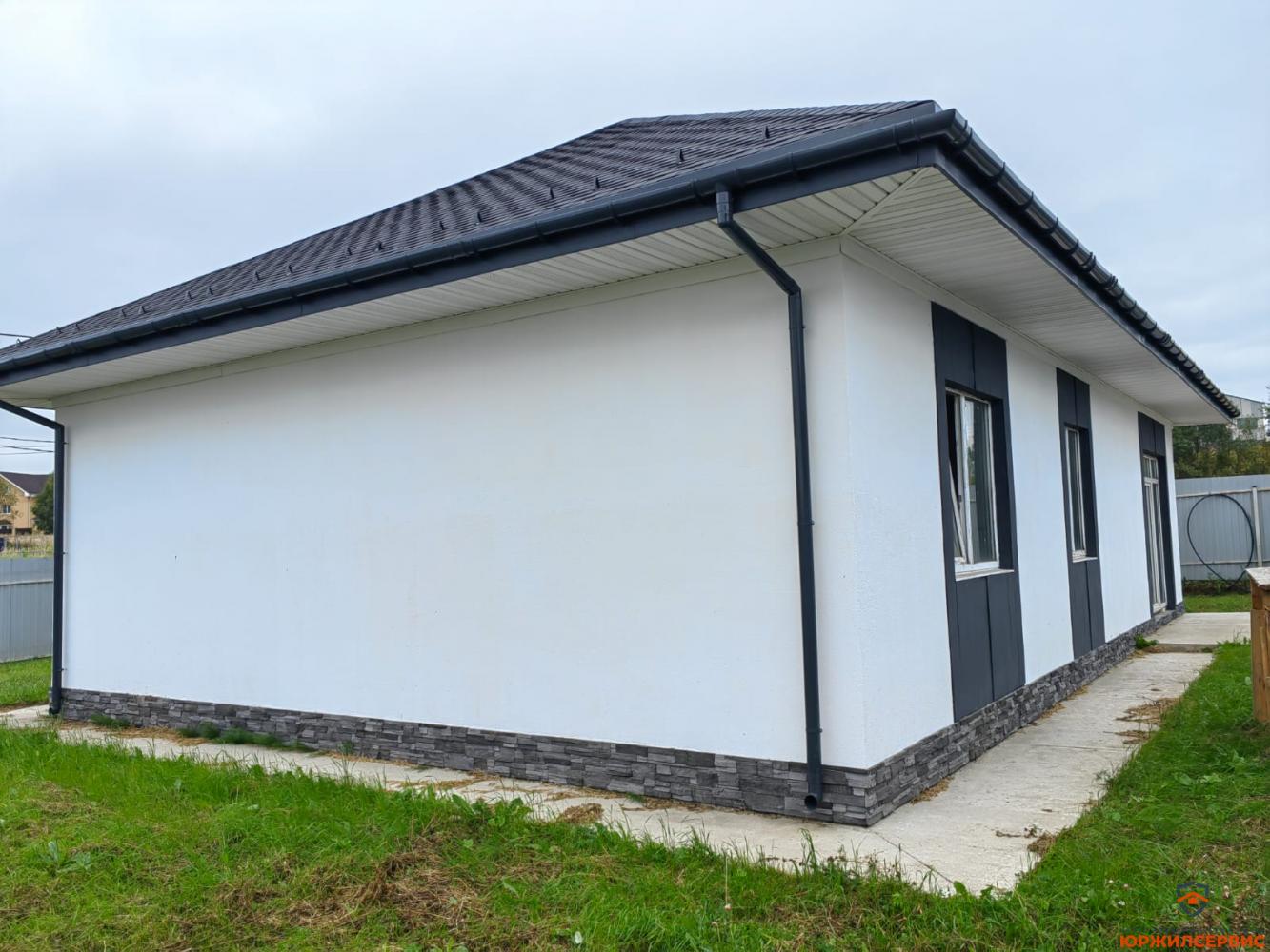 Блочный дом 2024 года постройки на участке 5.05 соток, категория земли — ИЖС. Одноэтажный, из газоблоков. Планировка: кухня-гостиная 33 м², 3 спальни, санузел, бойлерная. Изолированные комнаты.