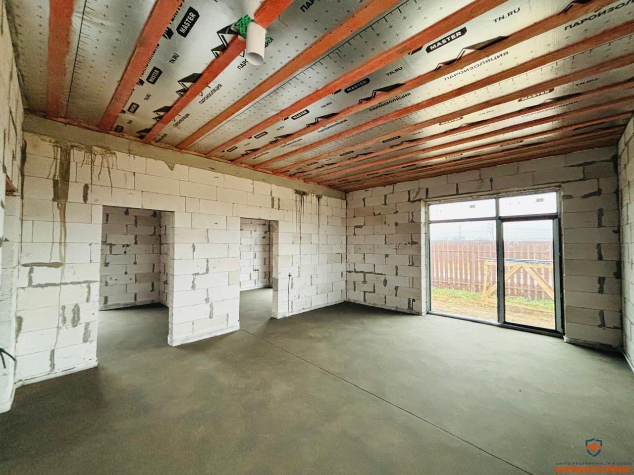 В доме вальмовая крыша с высокими потолками!
