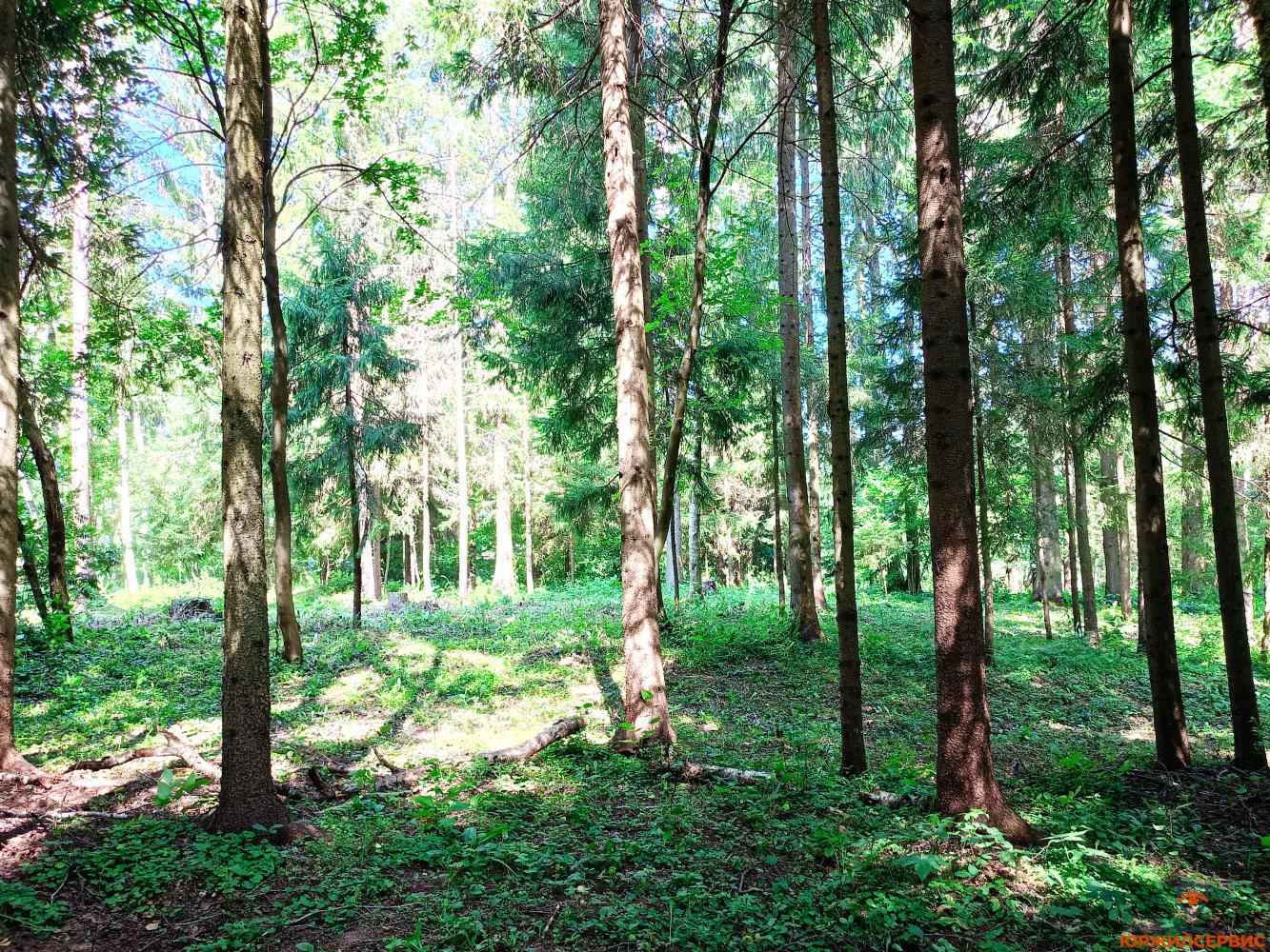 Поляна, переходящая в вековой смешанный лес