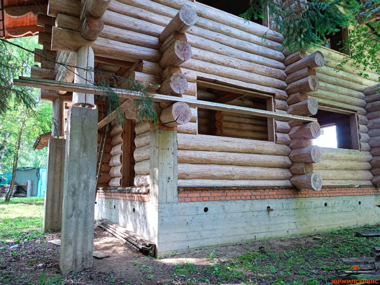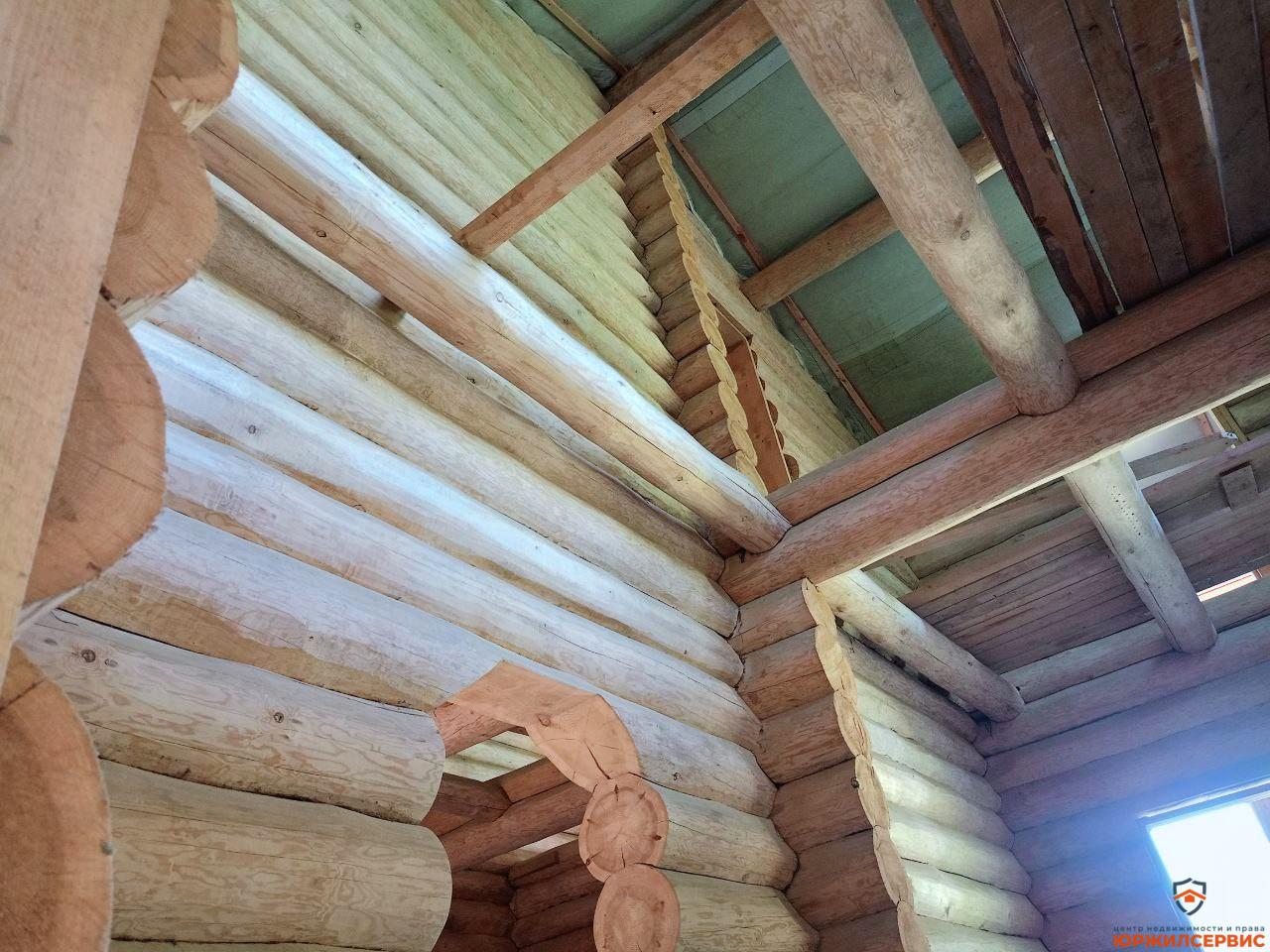 Бревно проложено северным мхом "Кукушкин лен",