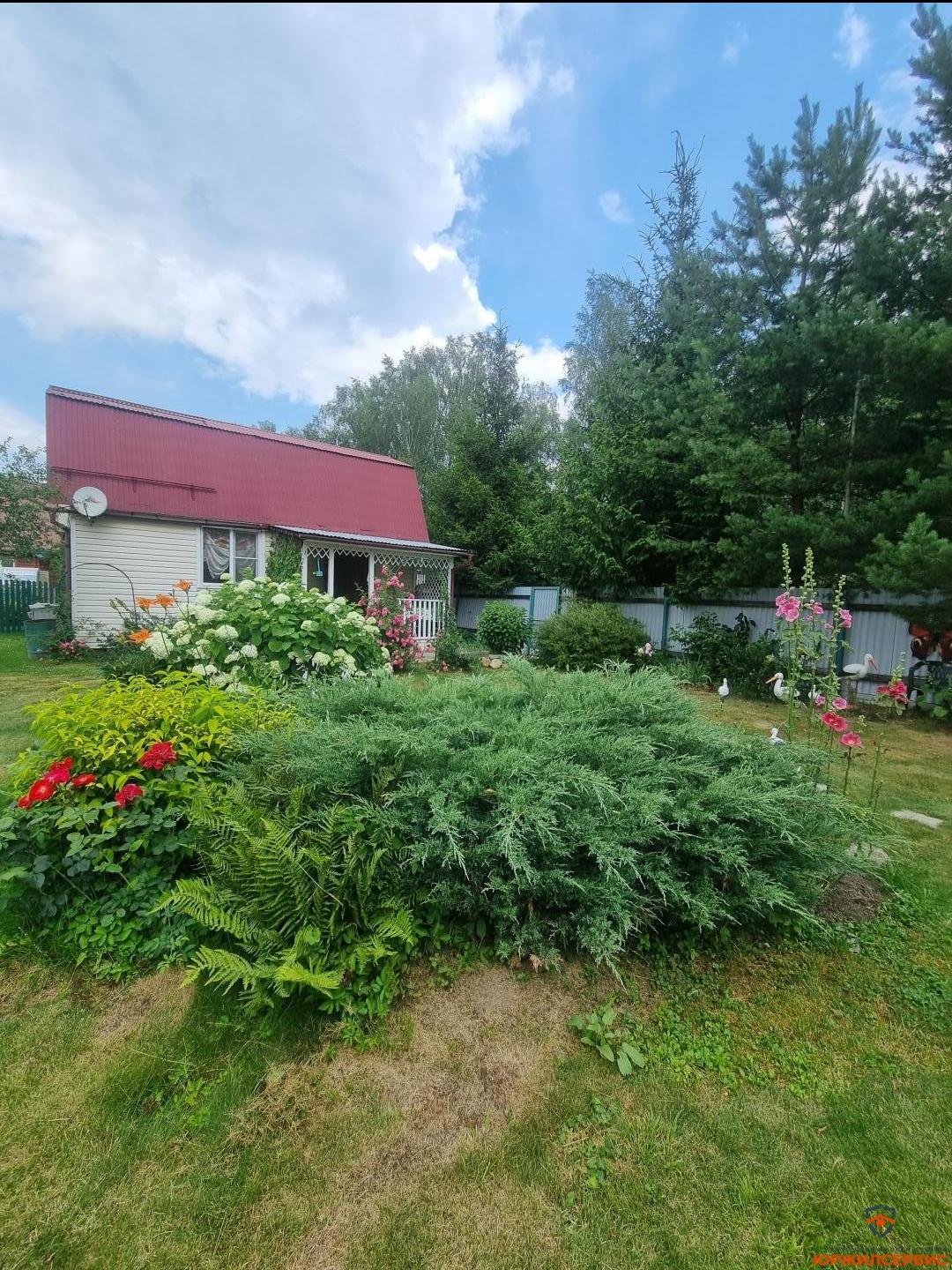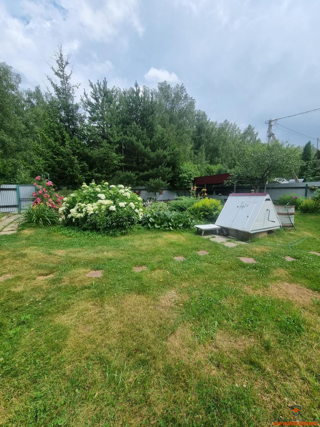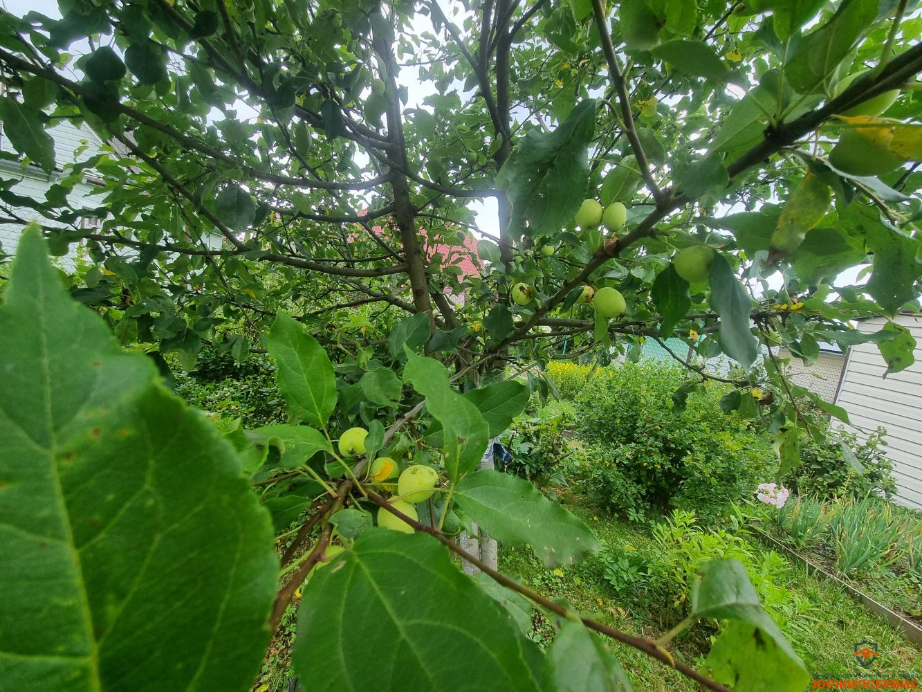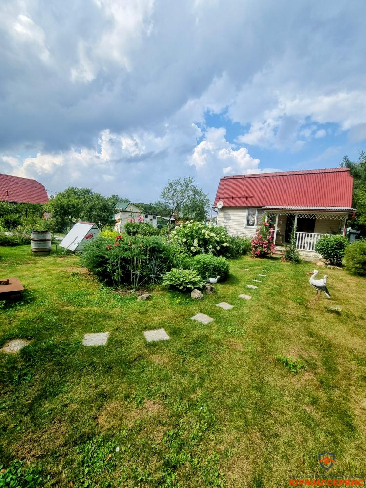 плодовые деревья и кустарники, цветник с декоративным прудом, небольшой огород, столик для пикника под грушей, туалет, душевая, хозблок состоит из двух секций, парковочное место под навесом.