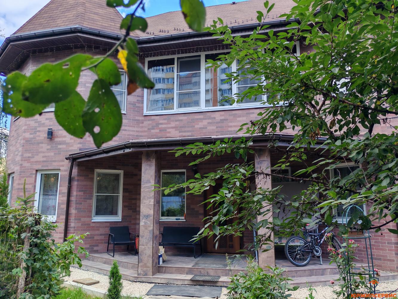 Участок 6 соток. Перед участком ещё 2 сотки примыкают, под парковку на 4 машины. На участке большие деревья 10 метров.