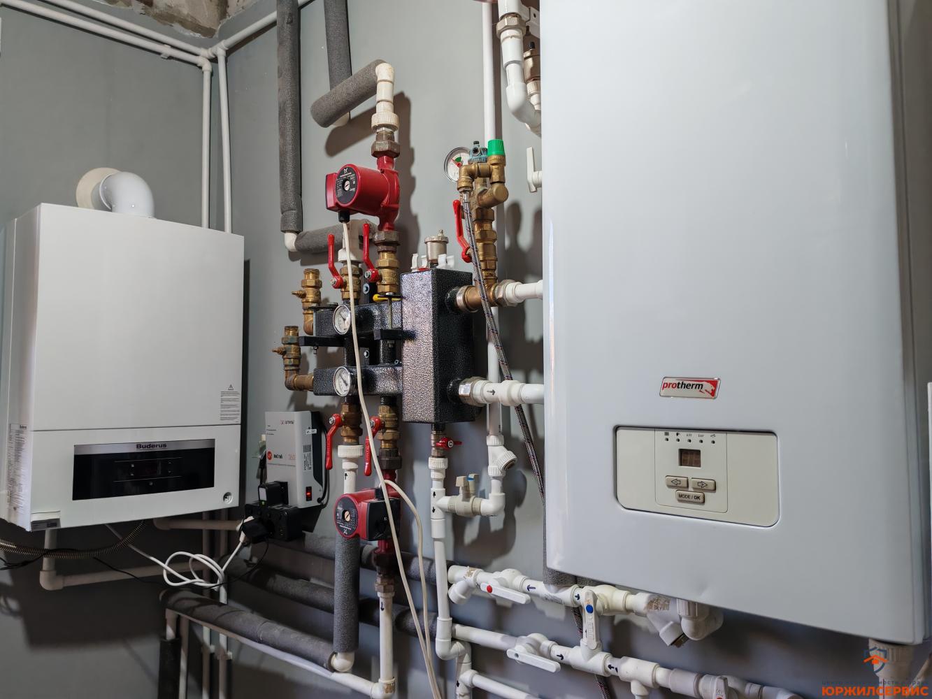 Газовое отопление, городской водопровод, давление 3атм., электричество 15квт. Есть возможность подключения центральной, городской канализации, на данный момент септик 5м3.