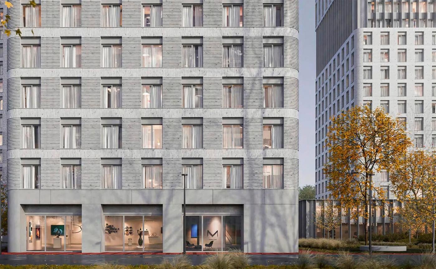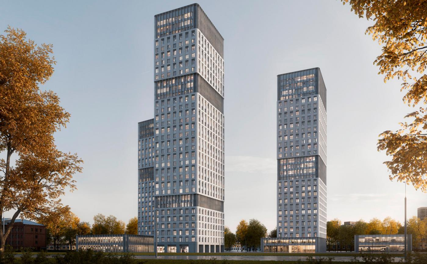 Жилой комплекс состоит из трех разноэтажных башен высотой от 24 до 33 этажей. Архитектурная концепция проекта разработана бюро WALL. Здания имеют увеличенную площадь остекления и динамичные фасады, облицованные объемной бетонной плиткой и легкими алюминиевыми ламелями. На первом этаже каждого корпуса расположены помещения для временного хранения велосипедов, лапомойки, гостевой санузел, а также комната для матери и ребенка. Кроме того, колясочные помещения будут доступны на каждом этаже.