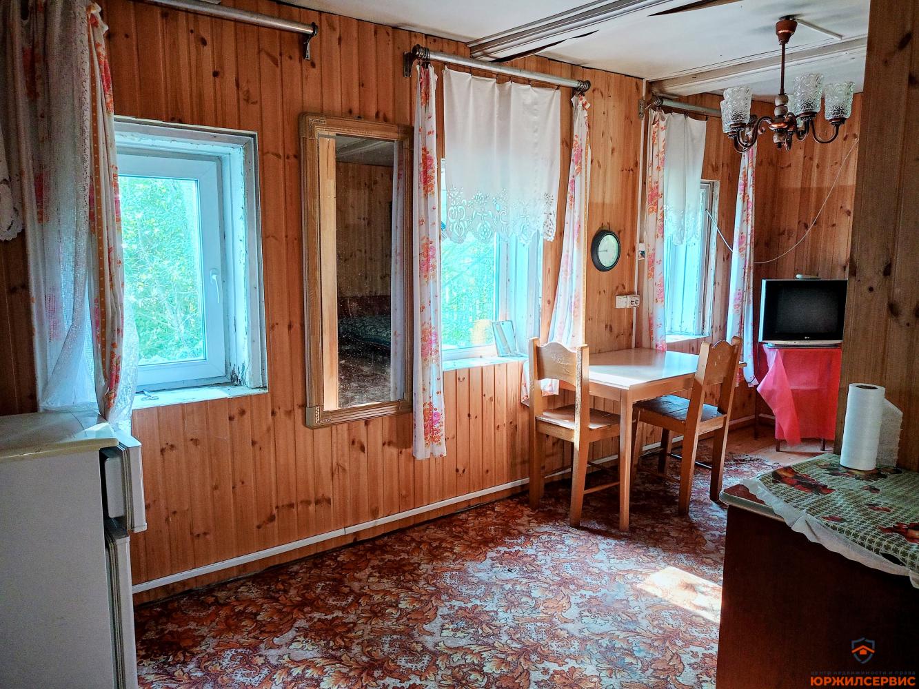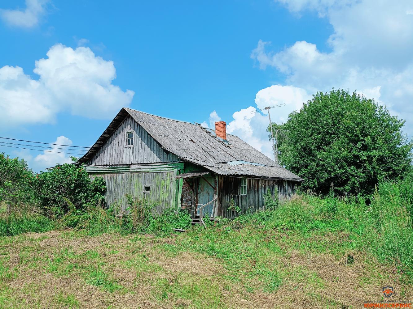 На участке стоит бревенчатый дом из сосны 36 м² (пристройка и крыша требуют ремонта).